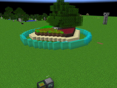 Unless specified with a complex Shape Card, the Builder will draw blocks at random from the supply chest on top. Depending on the choice of materials, the result may appear natural or extremely colorful.