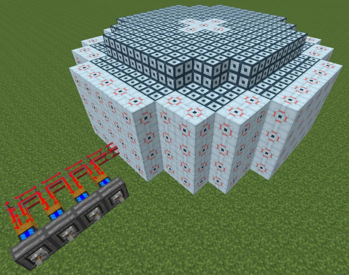 The Chemical Fusion Chamber is a 13x5x13 (width-height-depth) multiblock structure added by MineChem which allows the player to fuse two identical or different elements together to form an element with the sum of the atomic numbers.