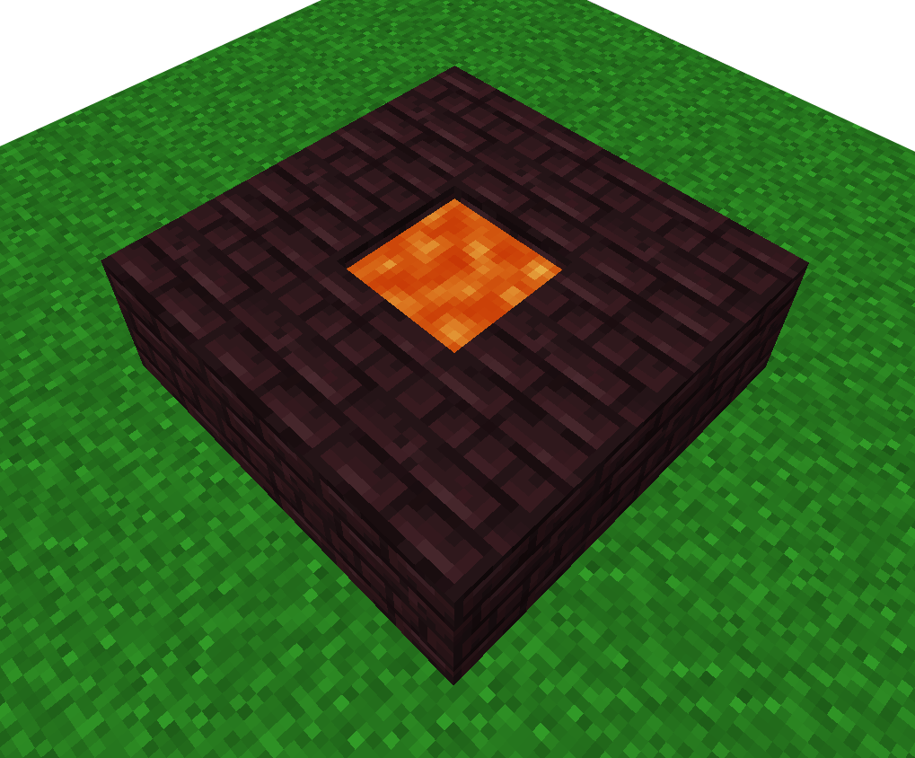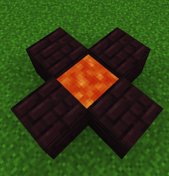 Such a construction (for Extra Utilities 2 version 1.1.3a) is depicted to the right. In version 1.4.0 and later, all 8 blocks[1] surrounding the center lava must be Nether Brick, rather than 4 — a complete square, instead of a plus shape.