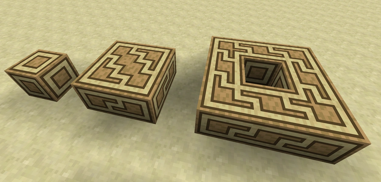Diagonal Wood is a decorative block from Extra Utilities 2. Its appearance is of a wood inlay design in colors resembling the different Minecraft wood planks; when placed together it employs connected textures to create elaborate diagonal and zig-zag patterns.