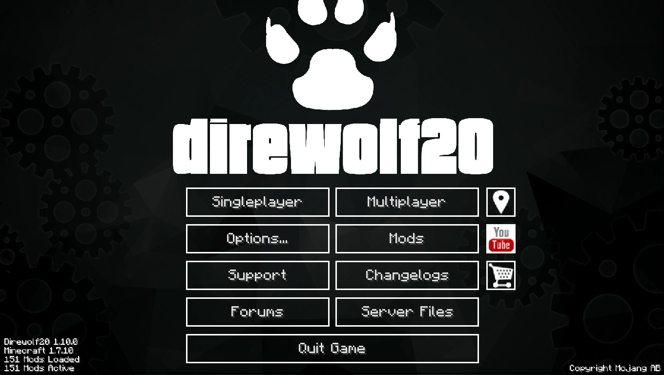 The Direwolf20 modpack is a Feed The Beast and CurseForge modpack designed by Direwolf20 for Minecraft 1.7.10. This pack is maintained and created by the FTB Team, and is considered a FTB modpack. Direwolf20 uses this on his Season 7 Modded Minecraft YouTube Let's Play series, which started on the 1st of November, 2014.