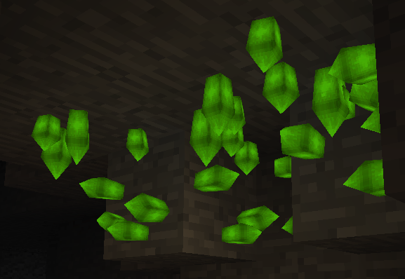 The Earth Crystal is a glowing ore added by Thaumcraft 5. It is found in clusters of 1-64. When mined, it will drop 1-4 Earth Shards (the number of shards it will drop is countable by looking at the block). Silk Touch is ineffective against the Earth Crystal, and due to Minecraft 1.8's rendering issues, the block in the inventory is rendered as an item.