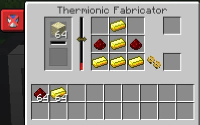 If the Thermionic Fabricator has sufficient power and materials, it will craft the Electron Tubes and output to the slot at the bottom-right.