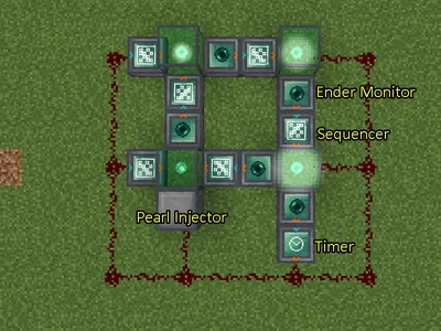 - Set the Timer to fire every 30 ticks. Note: The timer is reset by the adjacent Ender Monitor every time that an Ender Pearl passes through the nearby Endergenic Generator. In this way, the timer only triggers the Pearl Injector when more than 30 ticks have elapsed without a pearl passing.