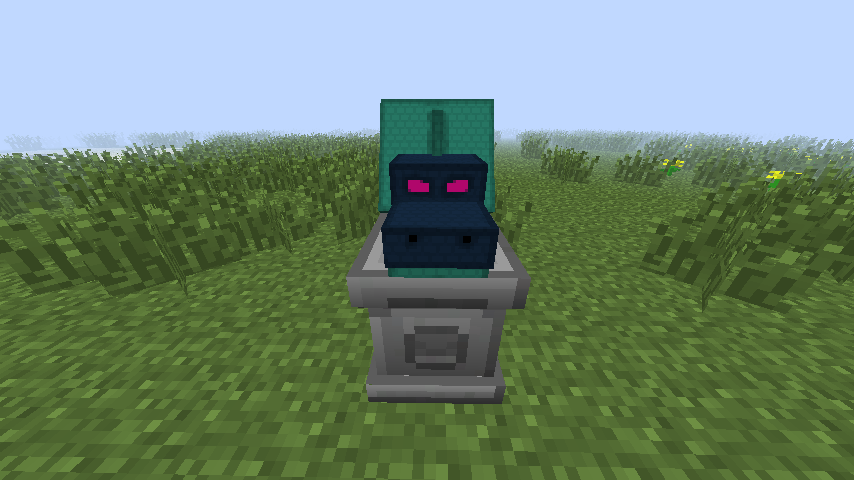 The Hydra Trophy is a block added by Twilight Forest. This block is obtained by slaying the Hydra boss. It is a decorative item, and appears as a small Hydra head. When right-clicked, the Hydra Trophy will make the same sound as a Hydra, but with a higher pitch. If the Hydra has been slain, it can be used on the Trophy Pedestal. For decorative purposes, the Hydra Trophy can be worn in the Helmet slot, giving the player the same head as the Hydra, though it does not give any additional benefits to wearing it.