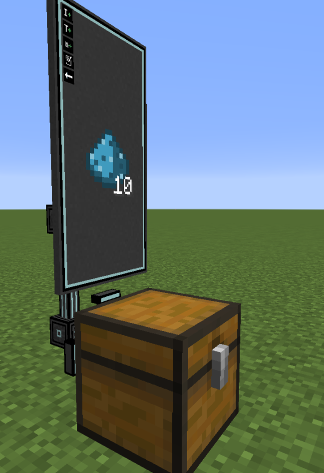 Like other displays, the Large Display Screen features an in world GUI that allows the player to customize elements and write text. There are 5 buttons on the left of the Large Display Screen that enable this customization. The buttons can be disabled and enabled by shift right-clicking the front of the Large Display Screen. This is a list of the Buttons provided in "Edit Mode" and what they do: