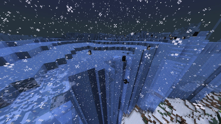 The Twilight Glacier is a biome added by the Twilight Forest mod. This is the only biome that Penguins spawn naturally inside of. The Twilight Glacier is a tall biome made entirely of Ice, though it can be changed to Packed Ice in the configuration file, and it is one of the tallest biomes within the Twilight Forest mod. It is typically in the middle of a Snowy Forest biome. The Twilight Glacier can only be found in the Twilight Forest dimension. Aurora Palaces are commonly found in these biomes.